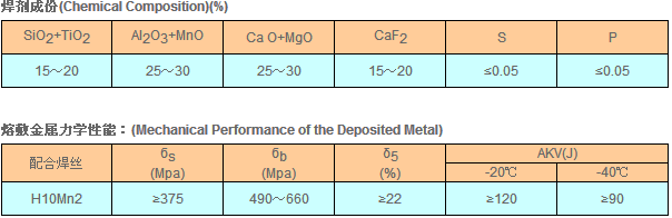 该焊剂经美国焊接协会(AWS)认可:F7A4-EH14(H10Mn2)