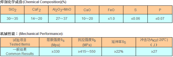 配合焊丝(如H08MnA,H10Mn2,H08Mn2Mo等)可焊接低合金钢(如16Mn,15MnV,15MnVN等)结构,广泛用于船舶、锅炉、高压容器等、细粒度焊剂,可用于细丝埋弧焊,焊接薄板结构。